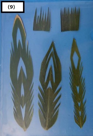 「葉が(4)のように3つに分かれたね。そしたら,これからがちょっとむずかしいけどね,どちらでもいいけど,はじの葉を反対の葉の間に入れるんだよ。写真の(5)のようにするとね,(6)で半分は完成だよ。」