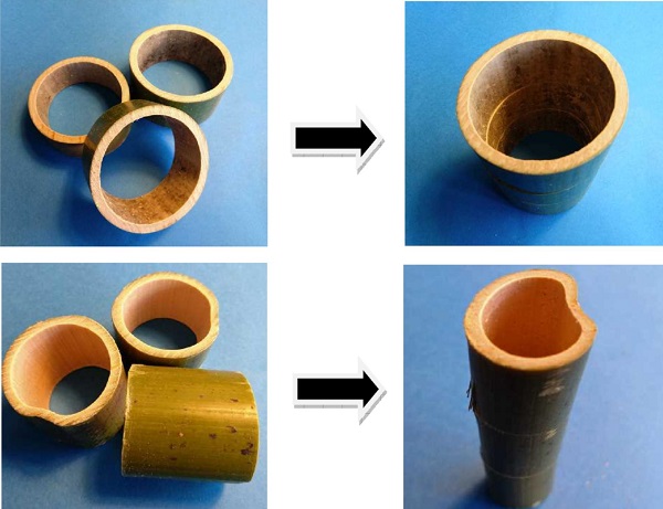 「とてもかんたんだよ。写真の1の竹の筒の部分を持ってね、それについているリングのような竹の輪を写真2のように入れるだけだよ。」